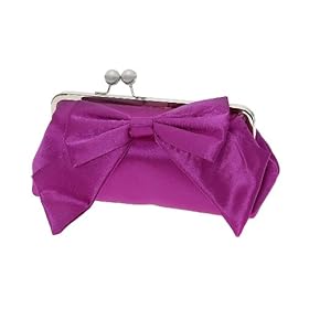 Product DescriptionAdorned with an oversized bow in tone-on-tone satin finish, this adorable clutch will be the perfect complement to your evening get-up. Petite and pretty, with kiss-lock closure and baguette profile.
