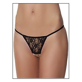 Here's a crotchless thong panty like no other! The front and thong-back cover you in a veil of delicate lace. The crotch area is left completely uncovered and cleverly frames your most intimate place with strands of pearls that roll pleasurably against you..