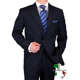 Click Here to see more reviews about: Valentino Made in Italy Mens Suit 3 Button 2pc Canvas Front Jacket Italian Suit Australian Merino Wool / Silk 150s Navy Stripe