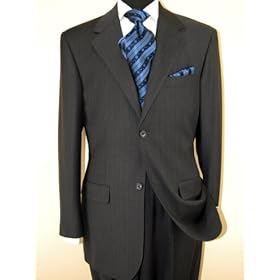 Click Here to see more reviews about: Valentino Made in Italy Mens Suit 2 Button Canvas Front Jacket Flat Front Pants Business Suit Australian Merino Wool / Silk 150s Charcoal Stripe