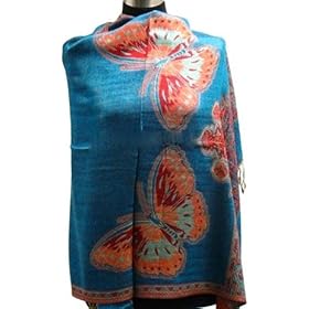 68" x 27" Reversible Big Butterflies Pashmina Shawl / Wrap / Stole - New !