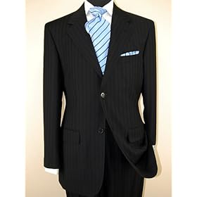 Click Here to see more reviews about: Valentino Made in Italy Mens Suit 2 Button Canvas Front Jacket Flat Front Pants Business Suit Australian Merino Wool / Silk 150s Black Stripe