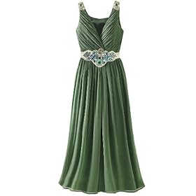 As with my review of the blue dress it is the same with this one. Very poor quality. It has 2 "patches" on each shoulder strap that makes it look ridiculous along with the cheap-looking stones. I would really recommend looking in a store before trying this. Looks are deceiving.