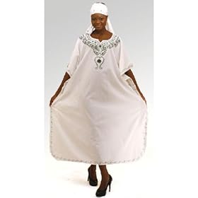 Click Here to see more reviews about: White Embroidered Caftan Kaftan with Matching Headwrap