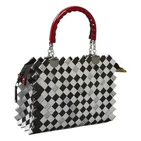 Woven candy wrappers give the uniquely styled Nahui Ollin Mini Poppins Purse an extra spoonful of sugar. This eco-friendly purse is a portable art piece with a body made up of leather and recycled materials woven together using an ancient Mayan binding technique. Its sturdy leather handles feature chain hardware and cool stitching detail. A top zip entry makes for a secure closure and a metal charm distinguishes this chic designer bag that fits your green lifestyle.