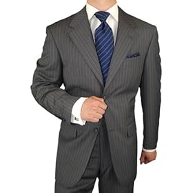 Click Here to see more reviews about: Presidential Suit Signature Collection Mens Suit Italian Merino Wool Two Button Jacket Flat Front Pants Business Suit Charcoal Gray Chalkstripe
