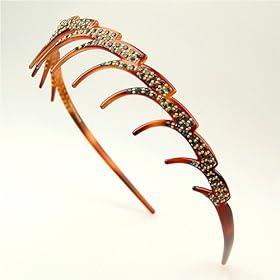 [Free Shipping] Proper polish. Fresh out of finishing school, this head band adds a touch of sparkling color without stepping over the line. More than 160 turquoise blue Swarovski crystals and many more golden studs are orderly lined up along the ribbed-design. The rake-like effect of the ribs hold onto your hair, making sure your tresses stay well-behaved. The translucent-brown base is very light-weight and comfortable to wear for long periods of time. A refined accessory befitting any lady - from class president to fusionist.