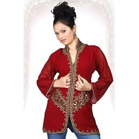 Click Here to see more reviews about: Burgundy long sleeves Kurti/Tunic with jacket style beadwork