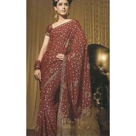 Click Here to see more reviews about: Reddish Maroon Embroidered Party wear contemporary georgette banarsi sari fabric / saree / wrap