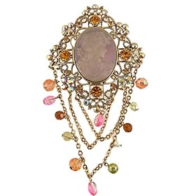 Click Here to see more reviews about: Victorian Style Cameo Brooch / Pin With Austrian Crystals & Dangling Beads -Large