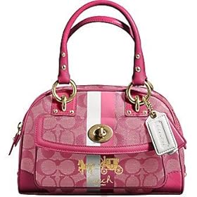 Review of Coach Heritage Stripe Signature Small Satchel Bag Tote 13197 Magenta